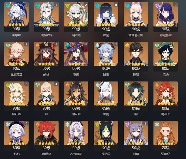 【男、60等、23金角、11金武】60等/男主/亞服/主打滿命夜蘭