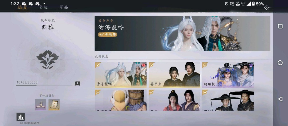 長鳴玉有4萬以上,清河全收集,清河鬼神愁金牌也達成 最煩人的海捕也已經滿級 開封探索度已達1萬出頭,可以大輕功隨意飛,也還有進度可以玩,不會買來就要等版本更新養老止戈目前在藏劍二階段,武學和心法全學會了,奇術也全學了 我沒有亂點,還有非常多資源可以用 本季武學挑戰已完成,稱號都已完成,每個武學等級都不低,想玩坦或奶媽,輸出,可隨意切換武學突破也有留自選箱,可以隨意更改主力武學 九劍的新法已經突破到4級九槍3級 每周各種幣我都有打到每周上限,進度完全不落後外觀,如圖片上所顯示,有買會自動撿掉落物的馬天工毒有刷1千多個,根本用不完 商店還有玉琵琶1300 還可換時裝