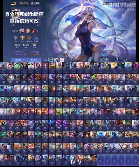 【Garena帳有綁定、鑽石、V9、113英、258造】悟空覺醒鳳來秘劍玄冥一拳合金惡魔沉香傑諾斯滅世月落fb斷連電話信箱可改