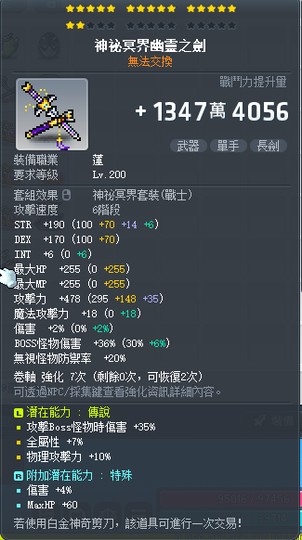 35%BOSS傷、35%BOSS傷、9%物 ,附加6%