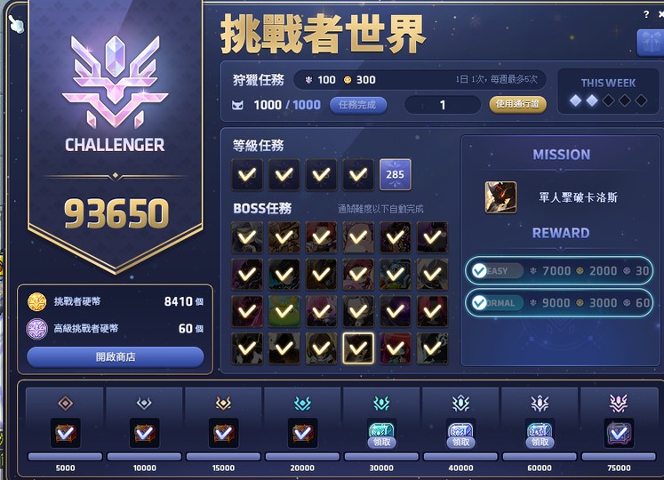 黑魔法師& 簡單卡洛斯 275 9000W以上(依據等級進度可降低門檻)