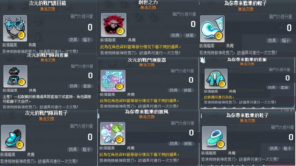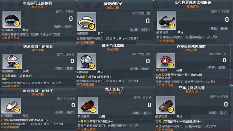 調查兵團勳章/訓練兵團勳章/菁英雙刀/潛水員戴夫勳章/椅子/機器人/點裝/林波/黑魔法師整套點裝/點武/黑暗天堂騎寵