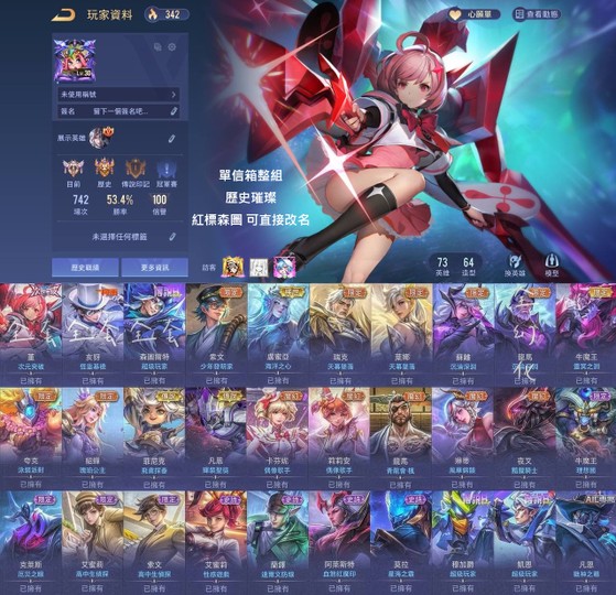 【Garena帳有綁定、星耀、V7、73英、64造】次元堇 基德 紅標森圖