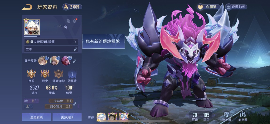 【Garena帳有綁定、璀璨傳說、V7、70英、105造】高勝、狂鐵、射手、多限定造型 {便宜售}