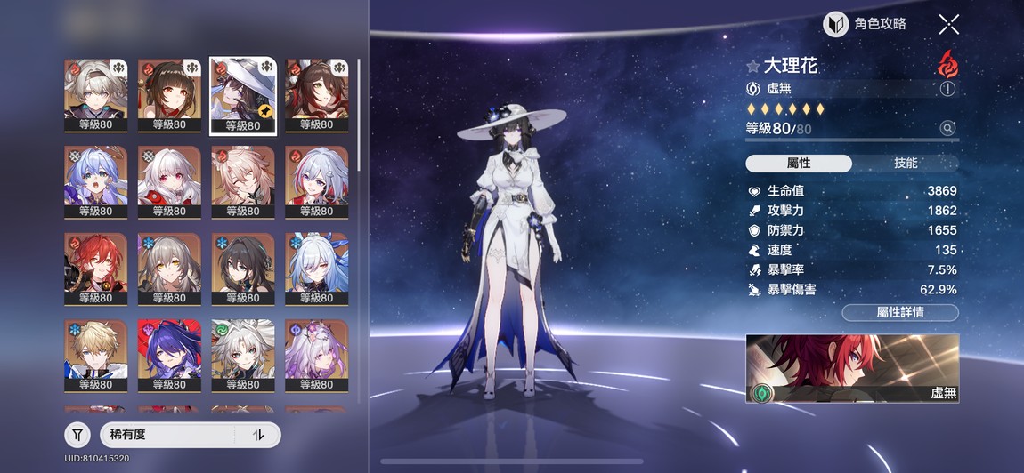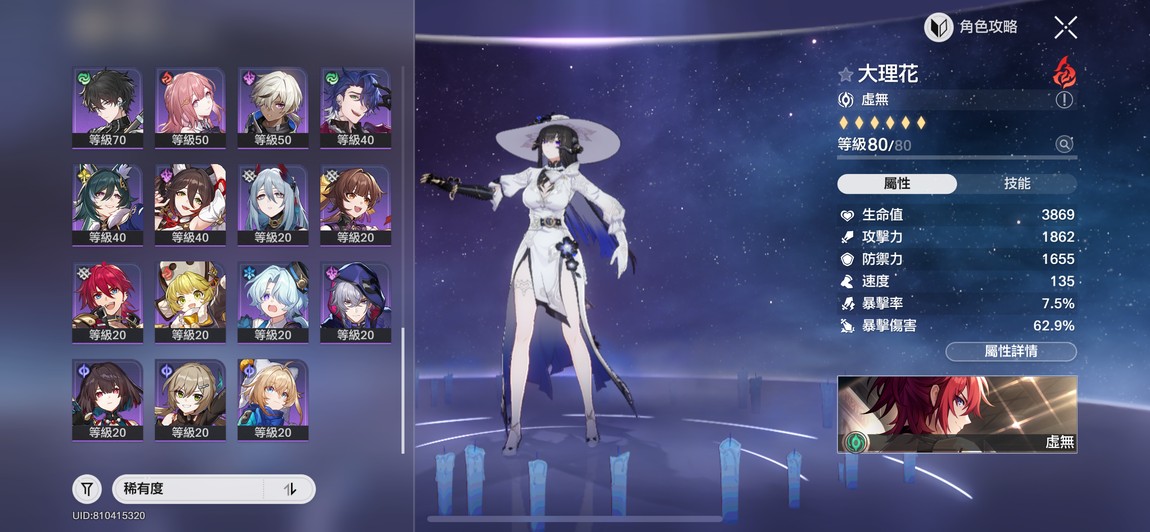 主打超击破 真傷 流螢2+0 大理花 砂金1+1 托帕1+1 椒丘0+1黃泉0+1 知更鳥 遐蝶