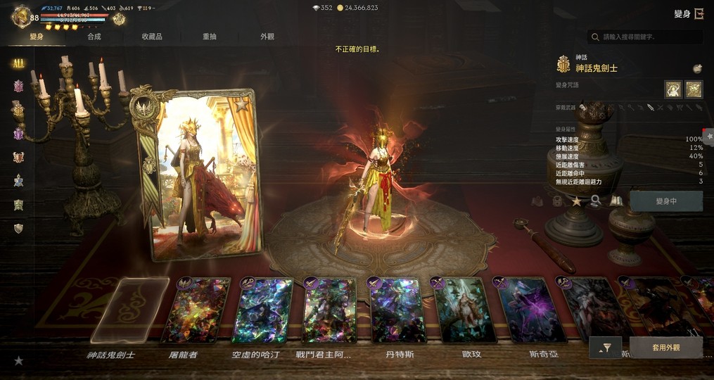 妖魔/骷髏 88等 金變金娃6紫技1獨特 600+防 鬼劍士