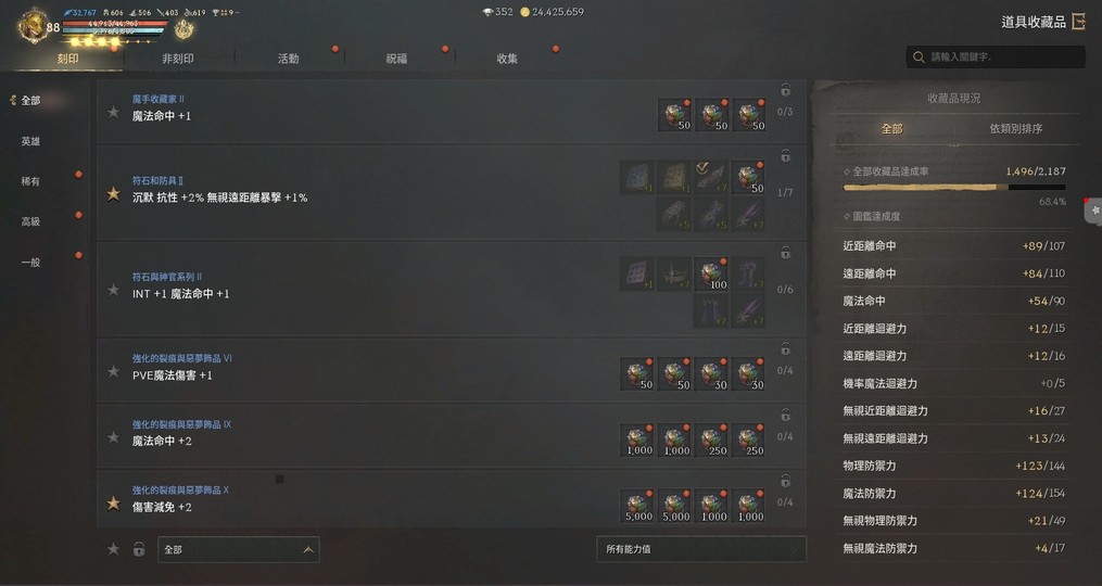 魔眼滿分: 火魔眼*2(1套攻擊/防禦)/ 經驗魔眼*1/遠攻 水魔眼*1