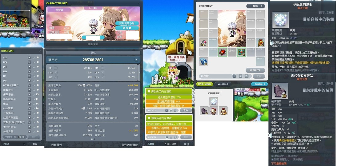 288等,滿名聲,美容美髮點裝多,冒險家職業群身上也有一堆點裝