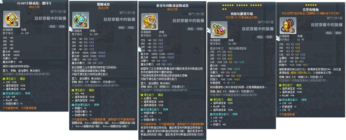 含掉寶一套(雙掉*5)、一套B傷寵(寵裝90攻)、絕版異世界生活勳章(+5%經驗)、黑之騎士、7日怪公、雪皮稱號、水槍拼圖