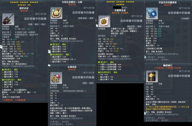 200等神秘裝5件傳說附加稀有爛潛都20星+武公的手套=6set+頂耳頂腰20星
