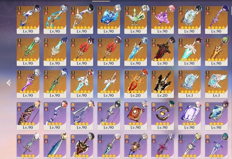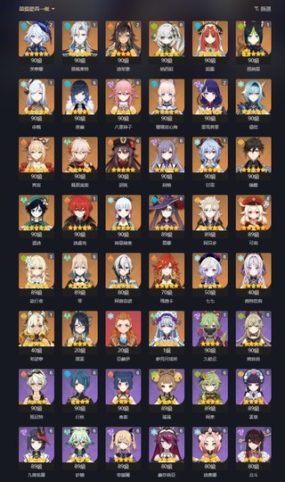 6命夜蘭、6命草神、6命八重、6命胡桃、2命水神、1命龍王、1命希諾寧、2命雷神、1命申鶴、火神僕人茜特0命,還有不少舊角色0命1命 看看圖參考下。