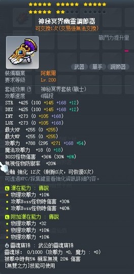 主潛能:70%BOSS10%物攻(強力主流主潛能)
