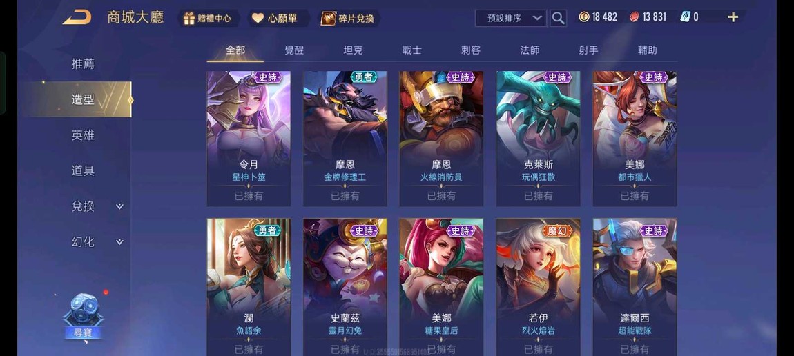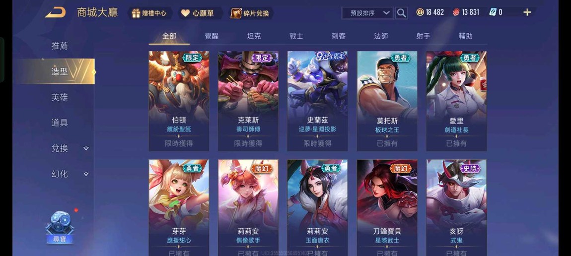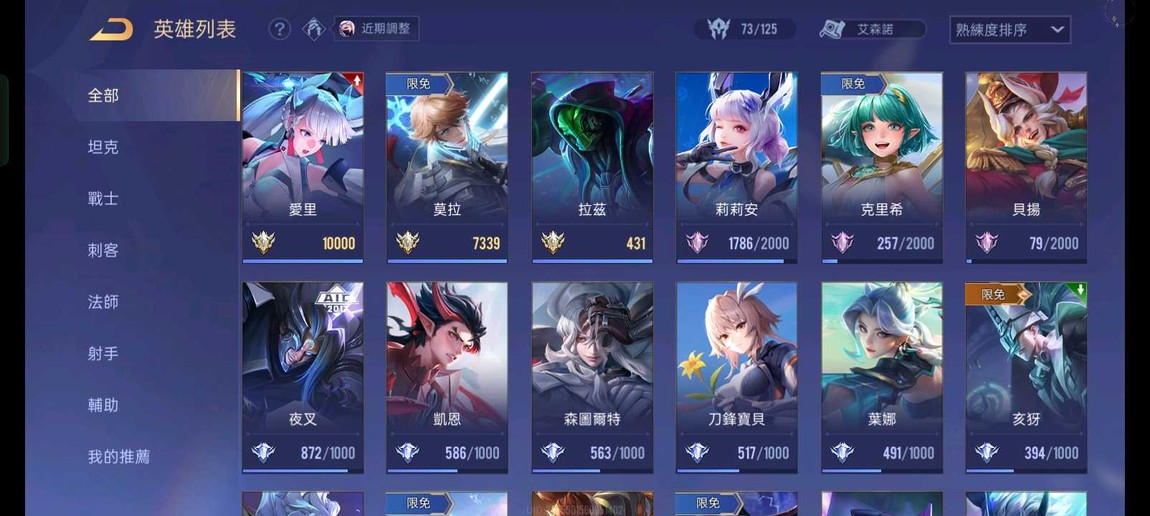 【Garena帳有綁定、星耀、無VIP、73英、105造】全服莫拉鳴劍、愛里文瑤、莉莉安女團、銀晝朔月、多稀世、多新年、多限定 (死綁號)