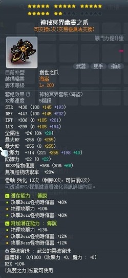 主潛能:80%BOSS10%物攻(次頂主流主潛能)