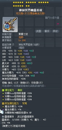 【神秘冥界幽靈長杖】22星 究極卷軸 全%BOSS 傳罕 雙S 卡爾納 冰雷 火毒 主教 烈焰 龍魔