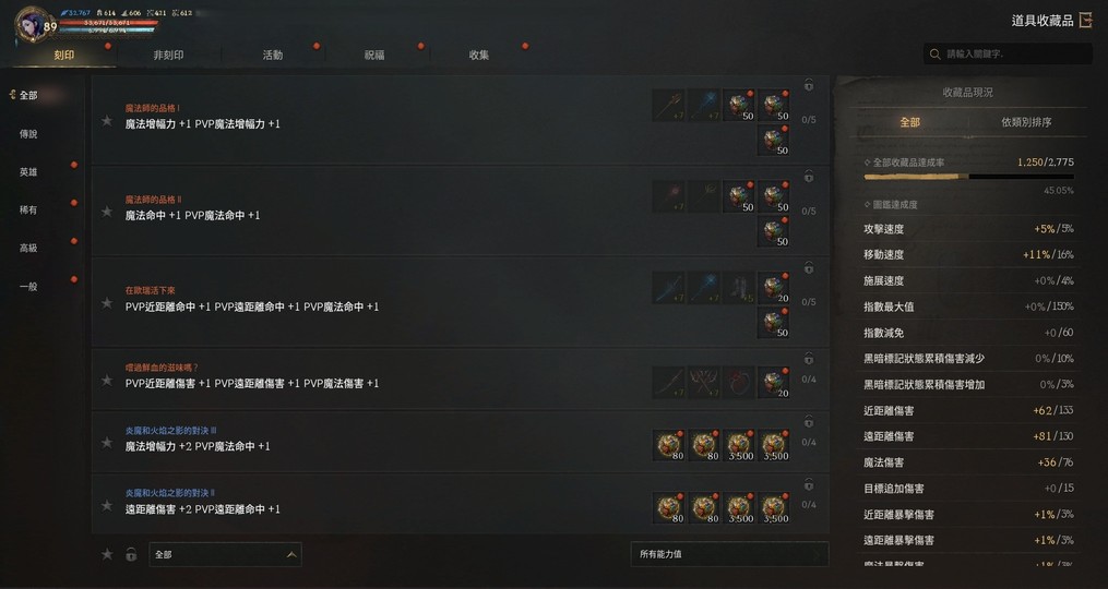 【護身符】:亞丁19階、扭曲18階、恐懼20階、地獄18階、殘酷17階、不滅16階、死神6階、象塔17階、樂園16階