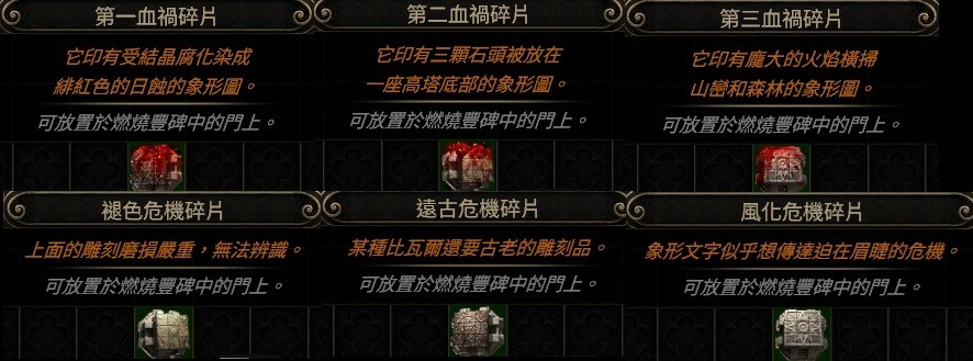 碎片→第一血禍、第二血禍、第三血禍、褪色危機、遠古危機、風化危機 (燃燒豐碑 )
