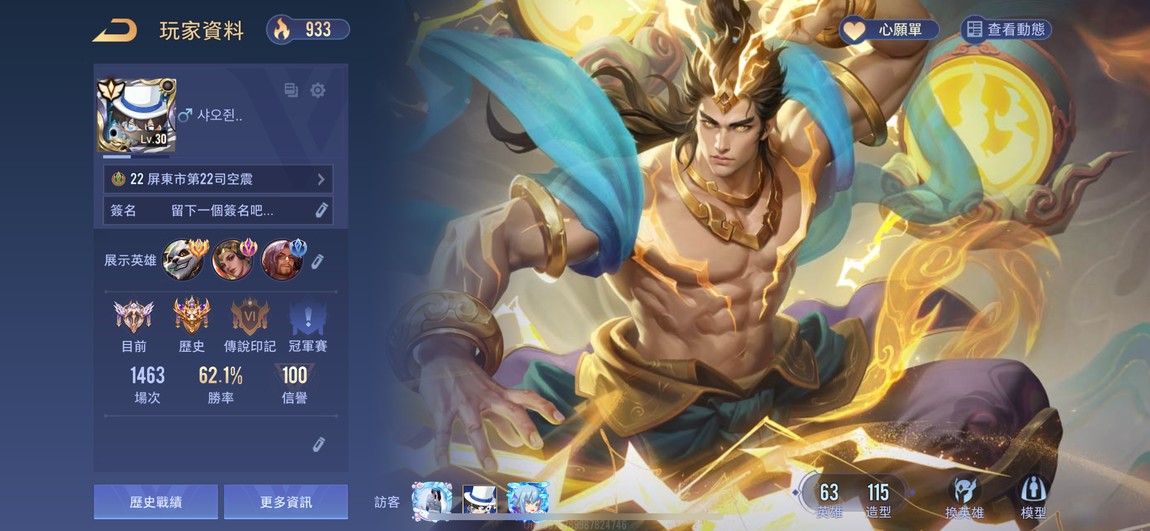【Garena帳有綁定、璀璨傳說、V5、63英、115造】璀璨全服號