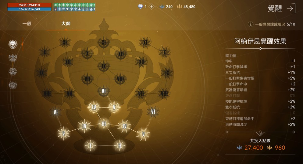抑制2 精準命中 實力記憶 昇華防護 帝國精通1 狩獵毅力II