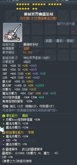 主潛能:30%BOSS26%魔攻(極限次頂主流主潛能 企盡80%BOSS10%魔攻 )