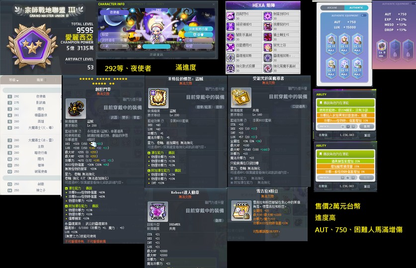 【292等、夜使者、9595戰地、750AUT】超高進度、完美創世、米特拉、黃書、雪皮