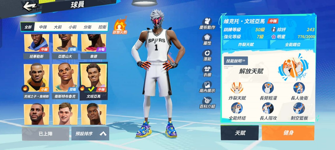 球員潛能全有,可以自己搭配