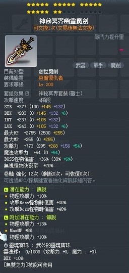主潛能:80%BOSS10%物攻(次頂主流主潛能)