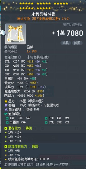 【永恆盜賊斗篷】雙傳25星39%幸永恆盜賊斗篷 附加97+1幸2.5排 白5全b~