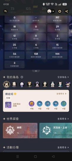 地圖探索 蒙德40% 璃月12% 雪山27% 層岩楓丹10% 其餘幾乎每動