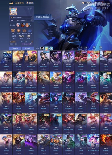 歷史璀璨傳說!!近全英雄兩百多造型!共115英雄227造型!勝率近52%!!共6次S傳說戰場印記!!常用奧義皆已齊全!