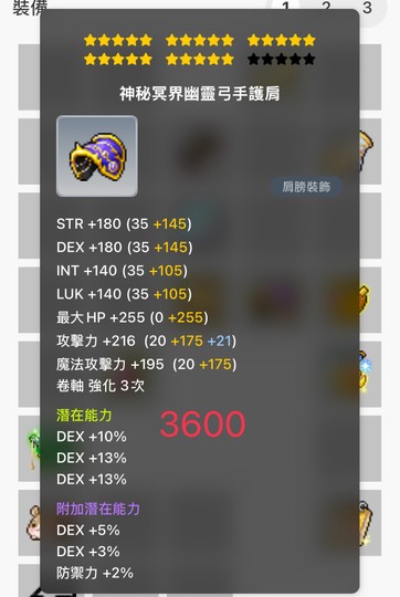 【神秘冥界幽靈弓手護肩】25星/X捲/36%敏/附加稀有