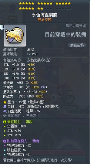 【永恆海盜肩膀】22C 全V 36%力 次頂帶全 白2