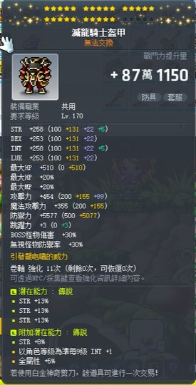 【滅龍騎士盔甲】25C/主淺39%力/附加13%力