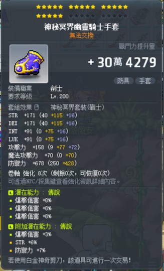 【神秘冥界幽靈騎士手套】20C/3爆/附加爆傷+6%力