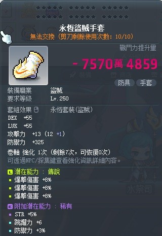 永恆盜賊手套 三爆 三爆手 乾淨 會先變回無限交易
