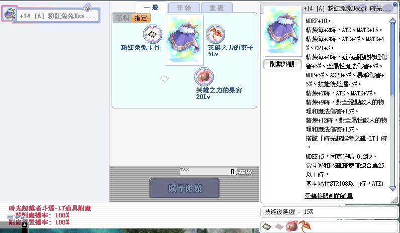 +14[A]時光超越者斗篷-LT(粉紅兔卡)[後延15%](葉5/力果實20)