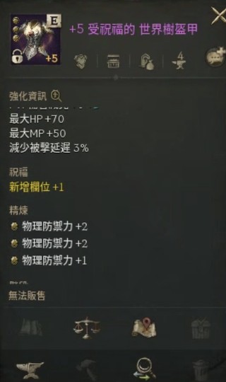 +5 祝福世界樹盔甲 防禦 2 2 1