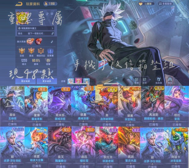 【Garena帳有綁定、先鋒傳說·星域、V6、51英、67造】五條悟 多直購盛典