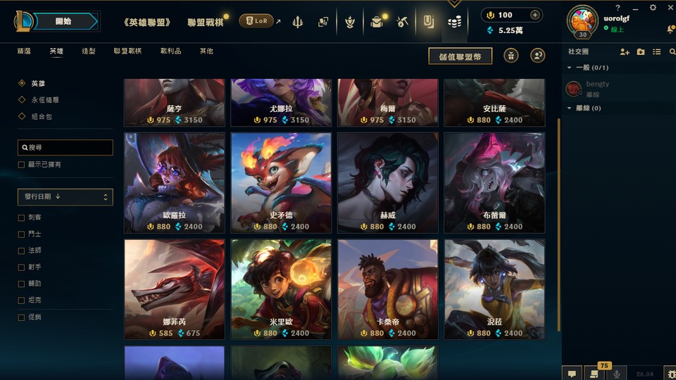 157隻英雄 大概剩5萬多藍粉 剩下的英雄一定可以全部買齊