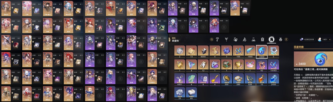 【女、70等、33金角、24金專】昔漣2+0 白厄2+1 刻律1+0 遐蝶0+1 風堇0+0