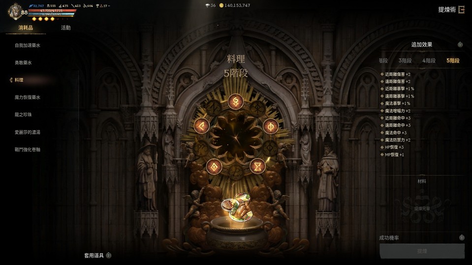 攻擊/命中 427/624(料理+戰鬥捲+附魔卷)