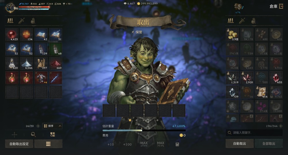 【萬能藥水】:萬能藥30滿,輕量182/1609 擴展0/10