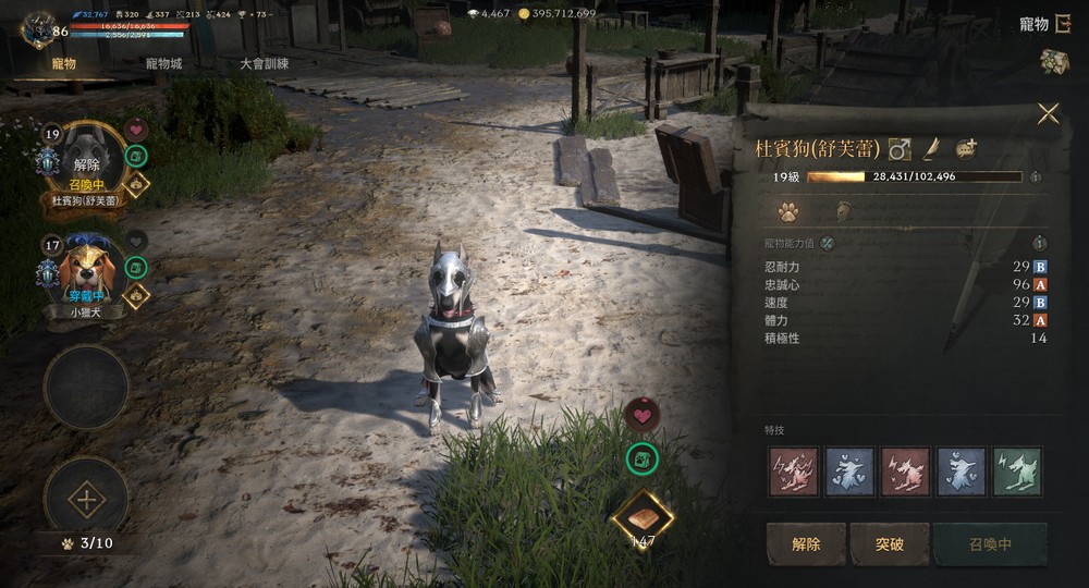 【寵物】:杜賓狗Lv19、小獵犬Lv17