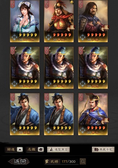 帳號特色:主打奸雄特技、SP關以前武將滿紅