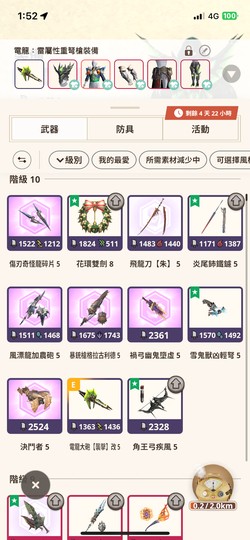【初始號】10-5 恐暴銃、怨虎輕弩,其餘10級武器如圖