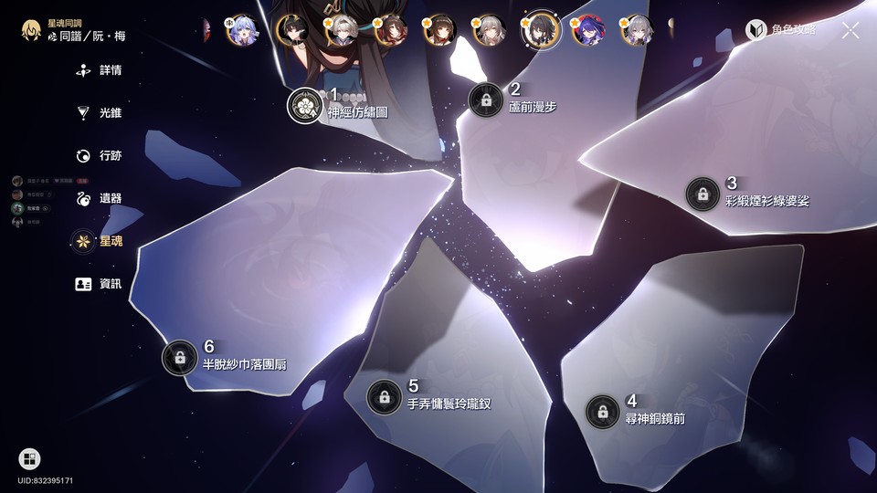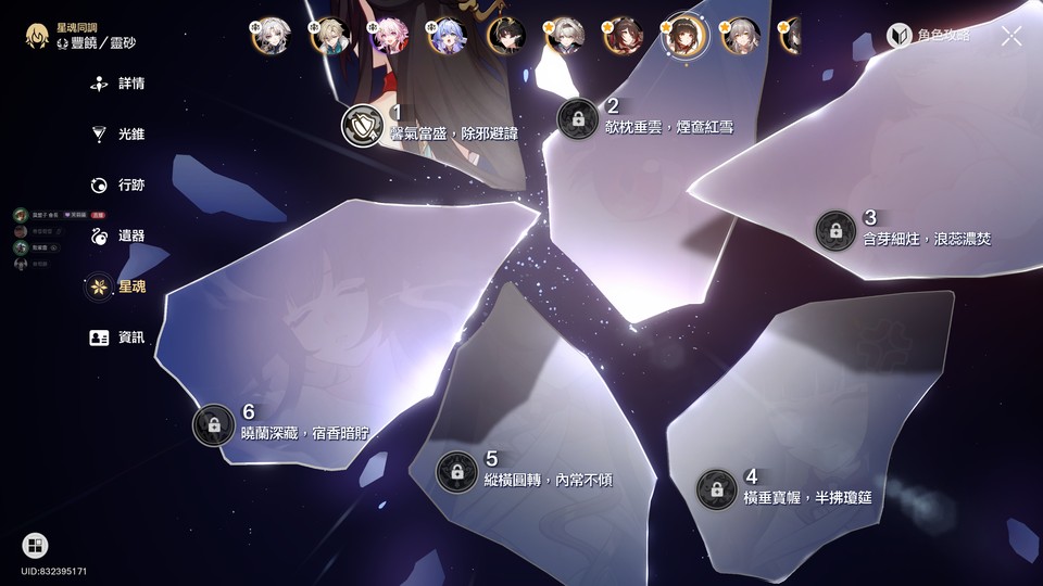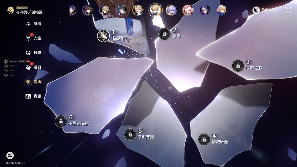 圖上的5星都有命座,其餘5星角皆0命
