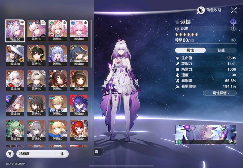 【女、70等、37金角、22金專】2+1瑕蝶、流螢、黃泉,1+1風堇,完整記憶隊,擊破隊(大理花)