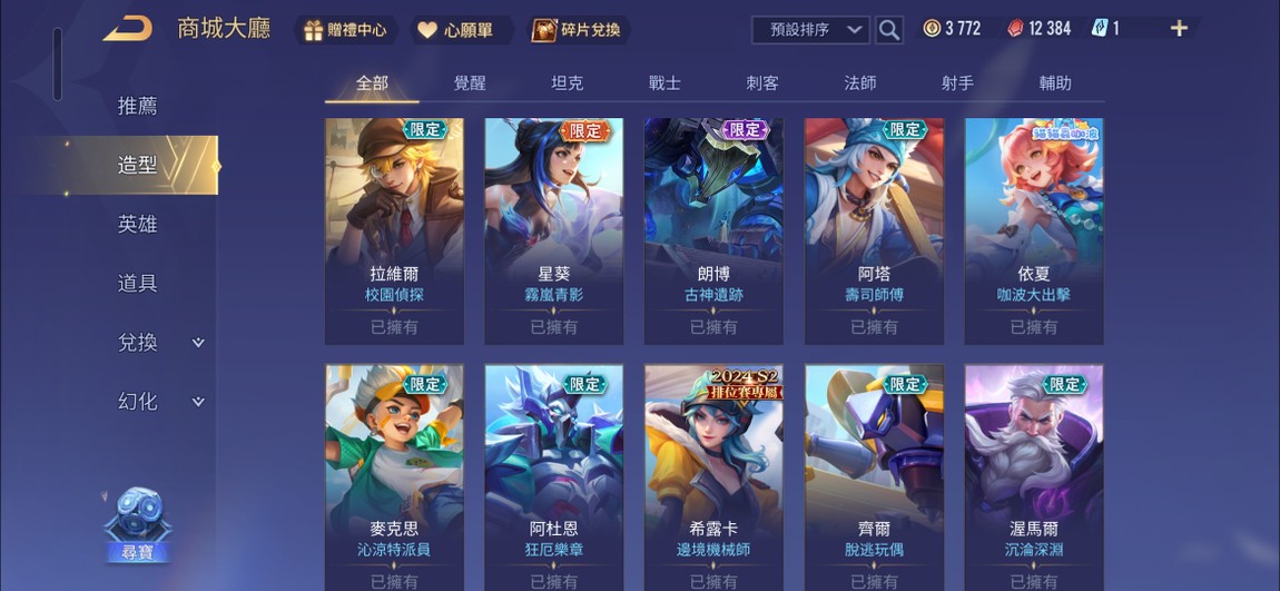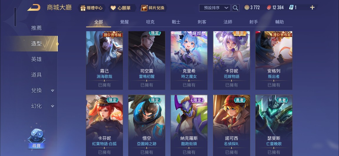 【Garena帳有綁定、星耀、V7、75英、109造】小魔女 時之魔女 時之奇旅 大耳狗 酷洛米 釘崎野薔薇 怪盜基德 森圖礦能狩獵