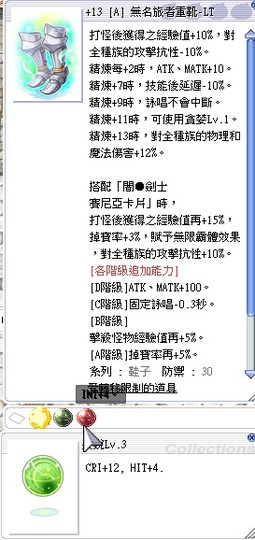 +13無名旅者重靴-LT A階 (全種族/尖銳/INT4)
