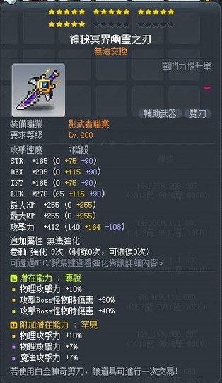 【神秘冥界幽靈之刃】20星 次頂 傳罕 雙S 影武者 雙刀部位 不斷環繞 存在超越空調 李室